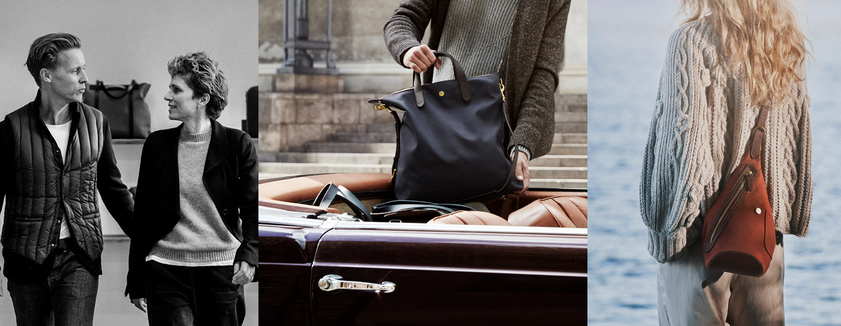 Kanvas kombineret med læder- og messingdetaljer skabte et designsprog, der hurtigt fandt vej til fashionable butikker i bl.a. Paris og London.