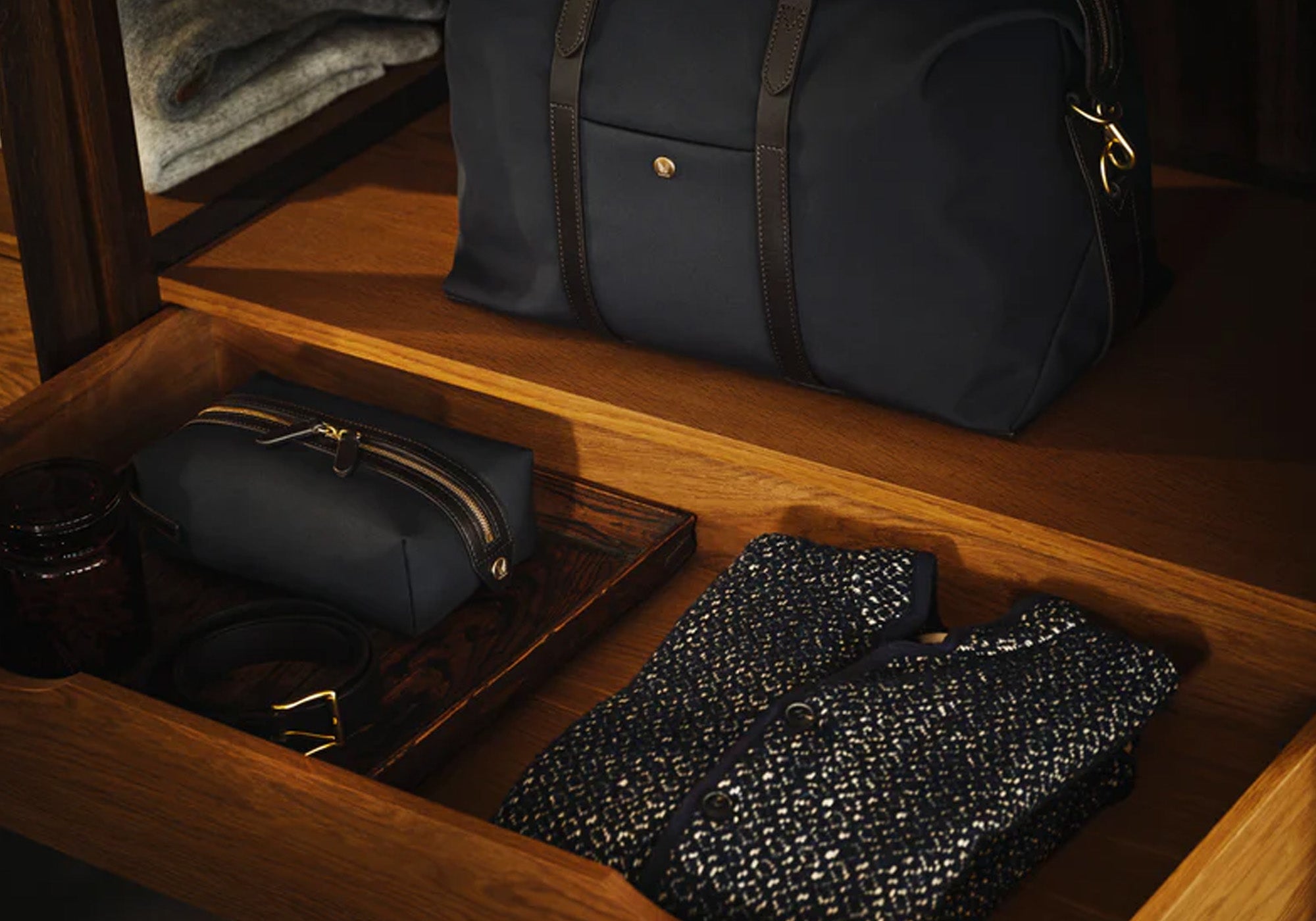 Toiletry bag, M/S Groom , from the Danish design brand Mismo. The toiletry bag has two small interior slide-down pockets on one side and an elongated pocket with overlapping closure on the other. The bag is fully lined with a thin nylon lining for extra durability and easy cleaning.