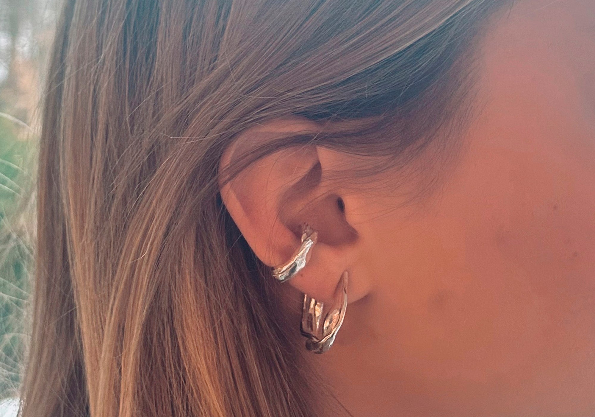 The earring comes in a left and a right version if you want them as a pair - and can be adjusted for a perfect fit by gently pinching or pulling, depending on the ear.