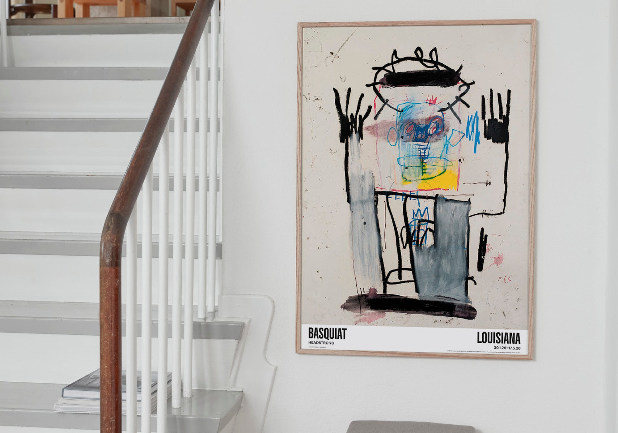 Louisiana Poster with the work, Untitled, 1981 by the American artist Jean-Michel Basquiat (1960–1988), published in connection with the exhibition Basquiat – Headstrong. The exhibition is set to be the first comprehensive showing devoted to the artist's depictions of the human head, including many works that the artist chose to keep to himself during his lifetime.