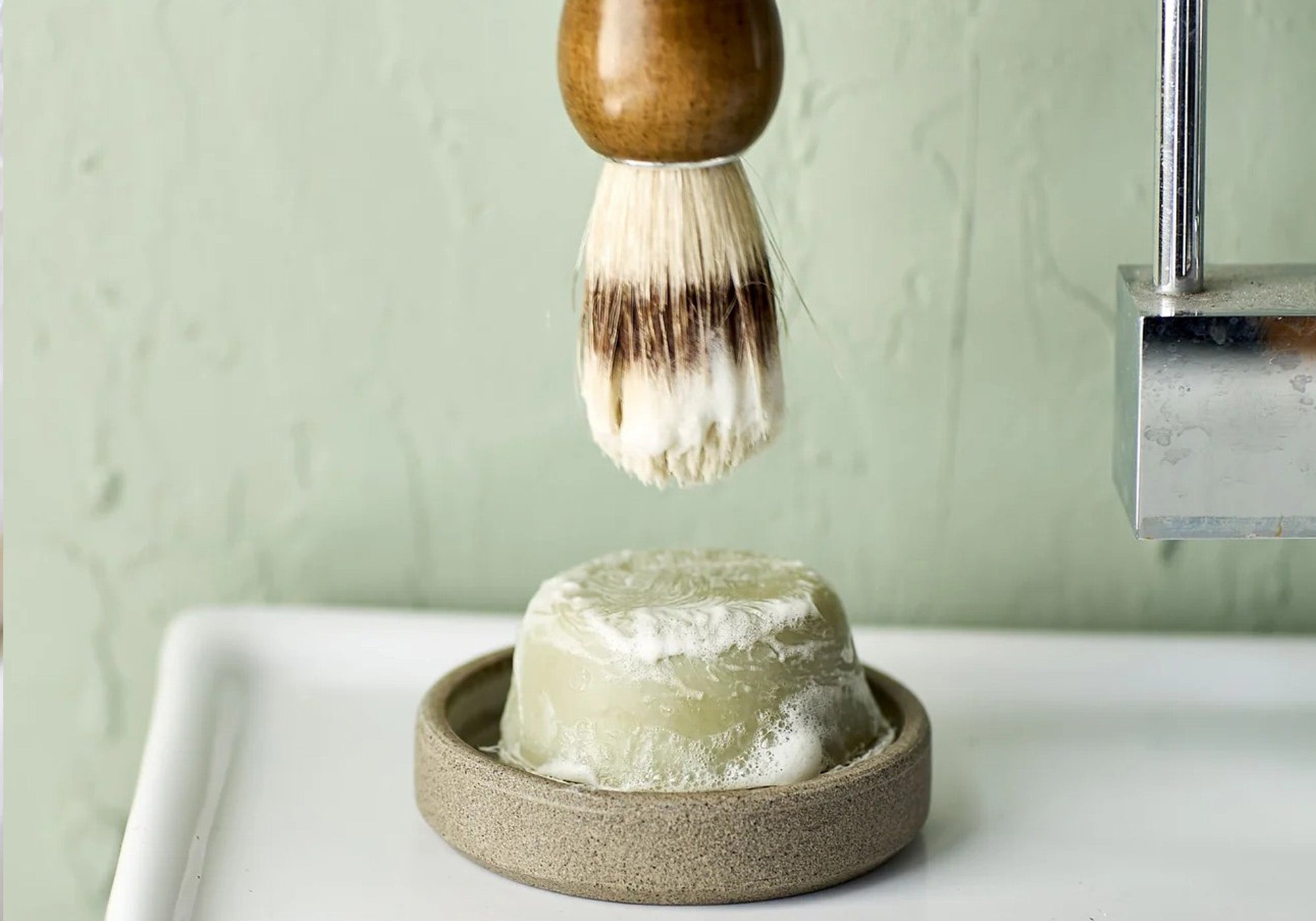 Wet the skin and shaving bar thoroughly with lukewarm water. Lather the soap between your hands or with a shaving brush for a rich lather. Apply the lather to the desired area and shave in the direction of the hair growth. Use more water if you want the soap to lather more. Rinse the skin with water and pat dry.