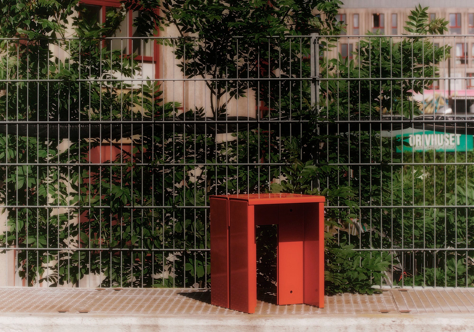 Stool, Re-Work Stool , from Danish design brand Our Society. The stool is carefully crafted from six clean, folded components that are screwed together to create subtle detail details. The stool functions effortlessly as a seat or side table. Its lightweight aluminum construction makes it easy to move and allows it to adapt to many different purposes with grace and ease.