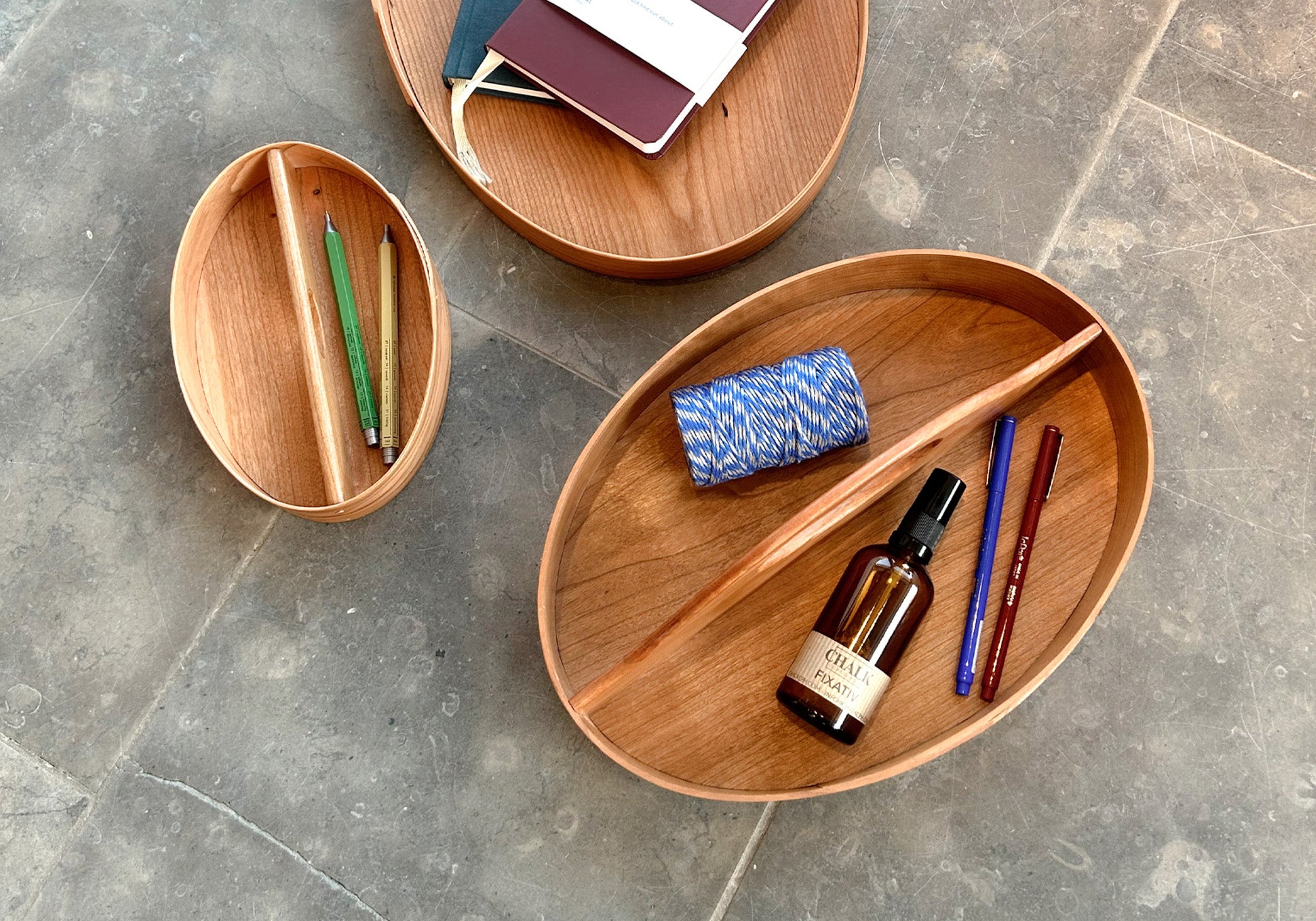 Handmade Shaker office tray in cherry wood from Danish Rikke Falkow. Rikke Falkow is a Danish architect, living in Rørvig. Falkow began importing and selling American Shaker products in 1995 and has since developed her own collection, inspired by the Shakers' philosophy of life and values of purity, orderliness and durability.