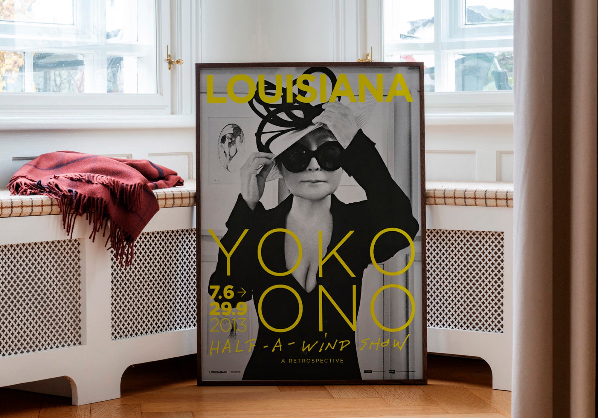 Louisiana poster featuring work by Japanese-American artist Yoko Ono (b. 1933), published in conjunction with the museum’s exhibition, Yoko Ono – half a wind show – a Retrospective, in 2013. Yoko Ono is a legend and one of the most influential artists of our time. On the occasion of Ono’s 80th birthday, Louisiana opened a retrospective exhibition of over 100 works, showcasing the diversity of media and disciplines in Yoko Ono’s artistic production.