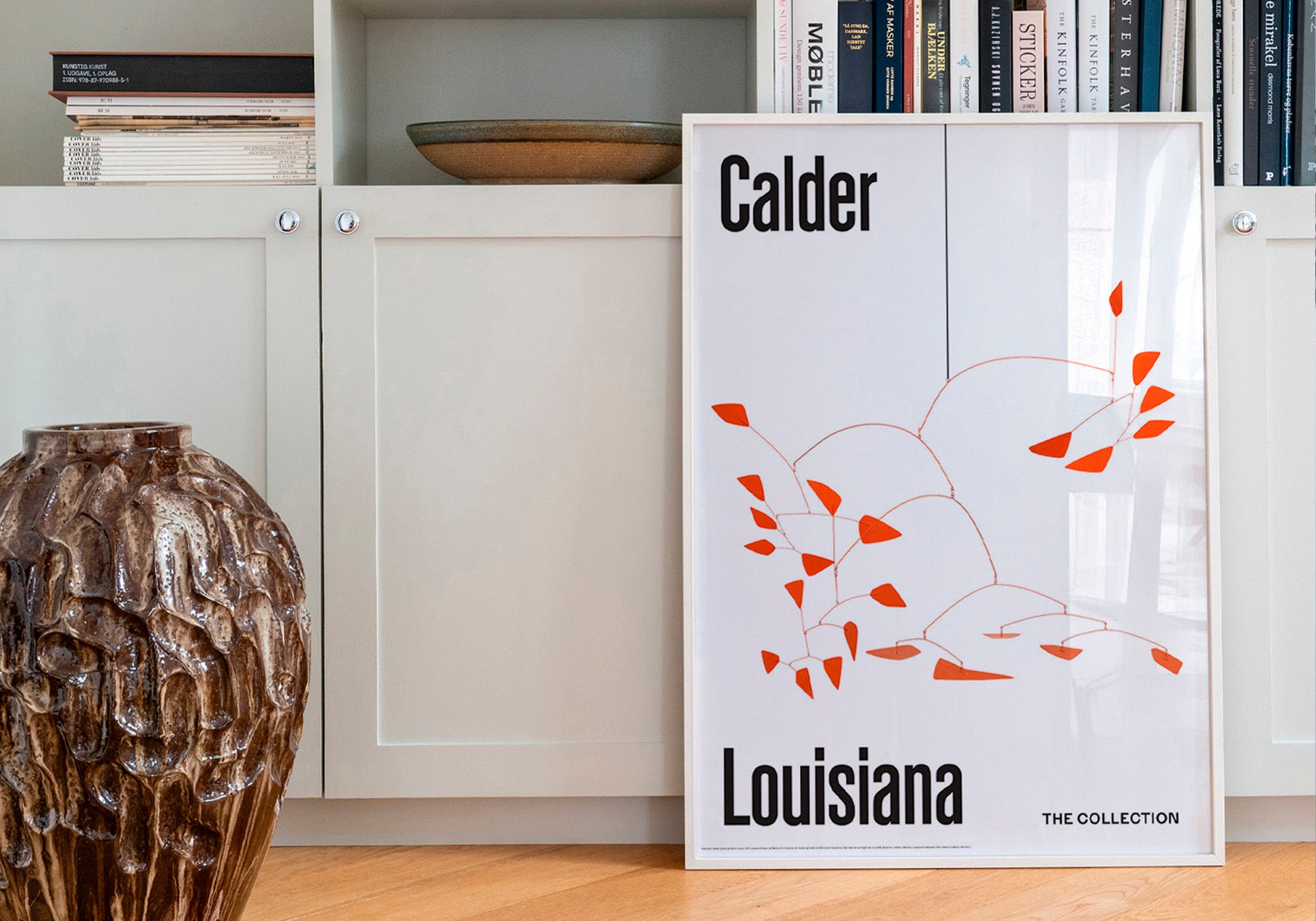 Louisiana Plakat med værket, Quatre Systemes Rouges, af den amerikanske kunster Alex Da Corte (f. 1980). Akrobater, linedansere og himmelrummets planeter var en stor inspirationskilde til mange af Calders skulpturer. Fælles for dem er, at de hele tiden er i bevægelse, og at denne bevægelse tilsyneladende foregår næsten frit i rummet.