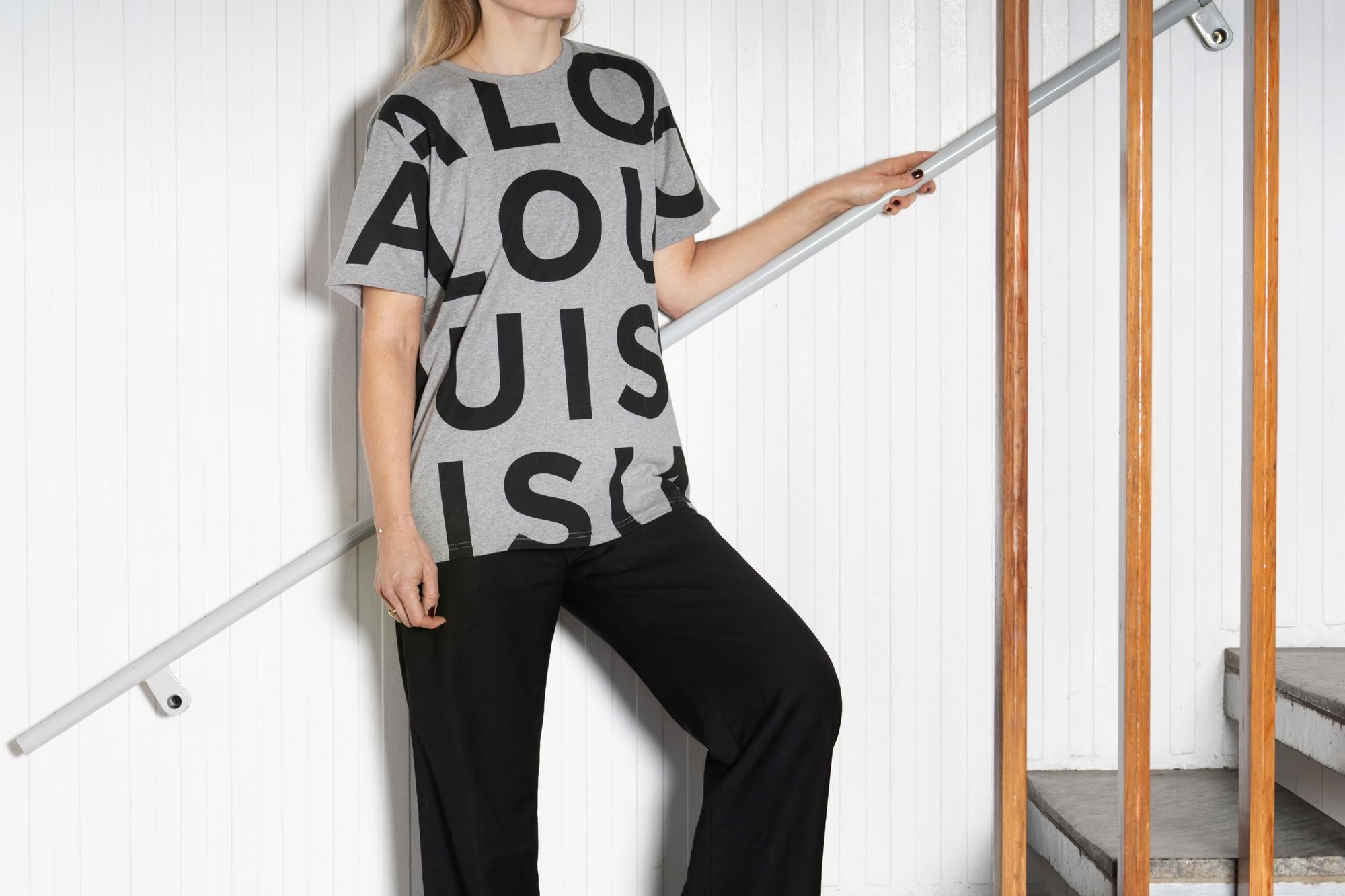 Louisiana T-shirt med print i grå er produceret af det danske mærke, Neutral®. T-shirten har et moderne grafisk udtryk med et hårdt beskåret grafisk logo. Louisiana navnet er arrangeret forskelligt på de individuelle størrelser, så alle størrelser har deres eget visuelle særpræg, deres egen komposition.