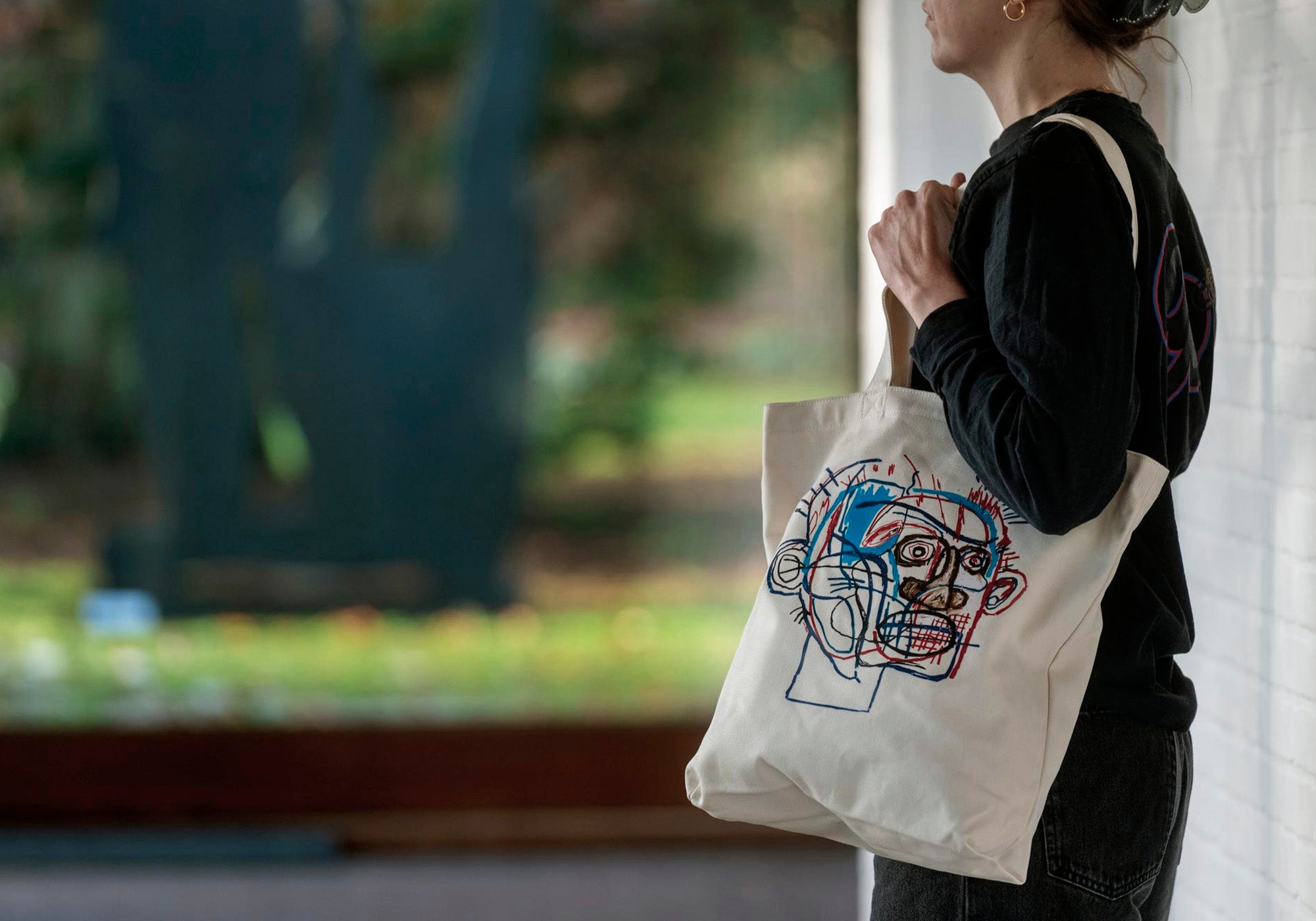 Tote Bag med værket Untitled Head, 1982 af den amerikanske kunstner Jean-Michel Basquiat (1960-1988). Tasken er designet og udgivet i forbindelse med udstillingen 'Basquiat – Headstrong'.