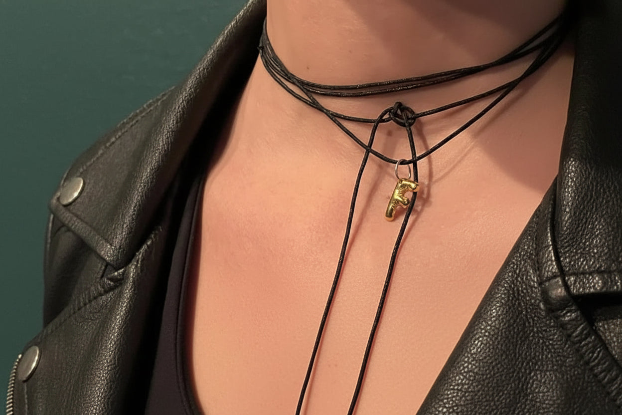 Ballonvedhæng, Loveletters, fra den danske smykkedesigner Vibe Harsløf. Vælg mellem forgyldte bogstaver A-Z. Vedhænget kommer med en sort snor, som du kan binde to gange rundt om halsen som en choker, eller én gang for et løsere udtryk.