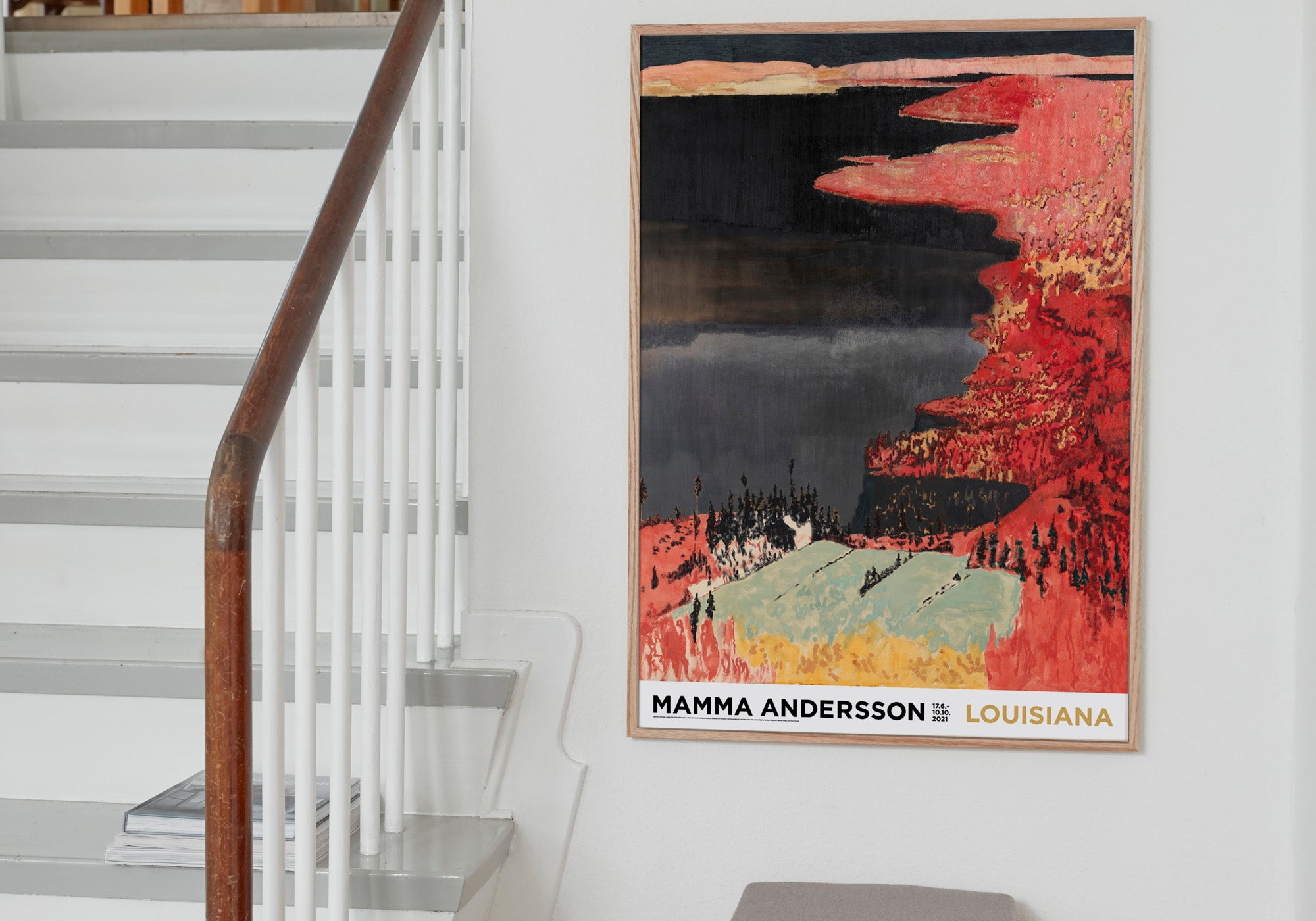 Louisiana plakat med værket, Dagen efter, (2020), af den svenske maler, Karin Mamma Andersson (f. 1962), som Louisiana præsenterede i 2021 med udstillingen, Humdrum Days. Mamma Andersson står som en af sin generations væsentligste malere og Louisiana præsenterede hende for første gang i stort udtræk, i Danmark.
