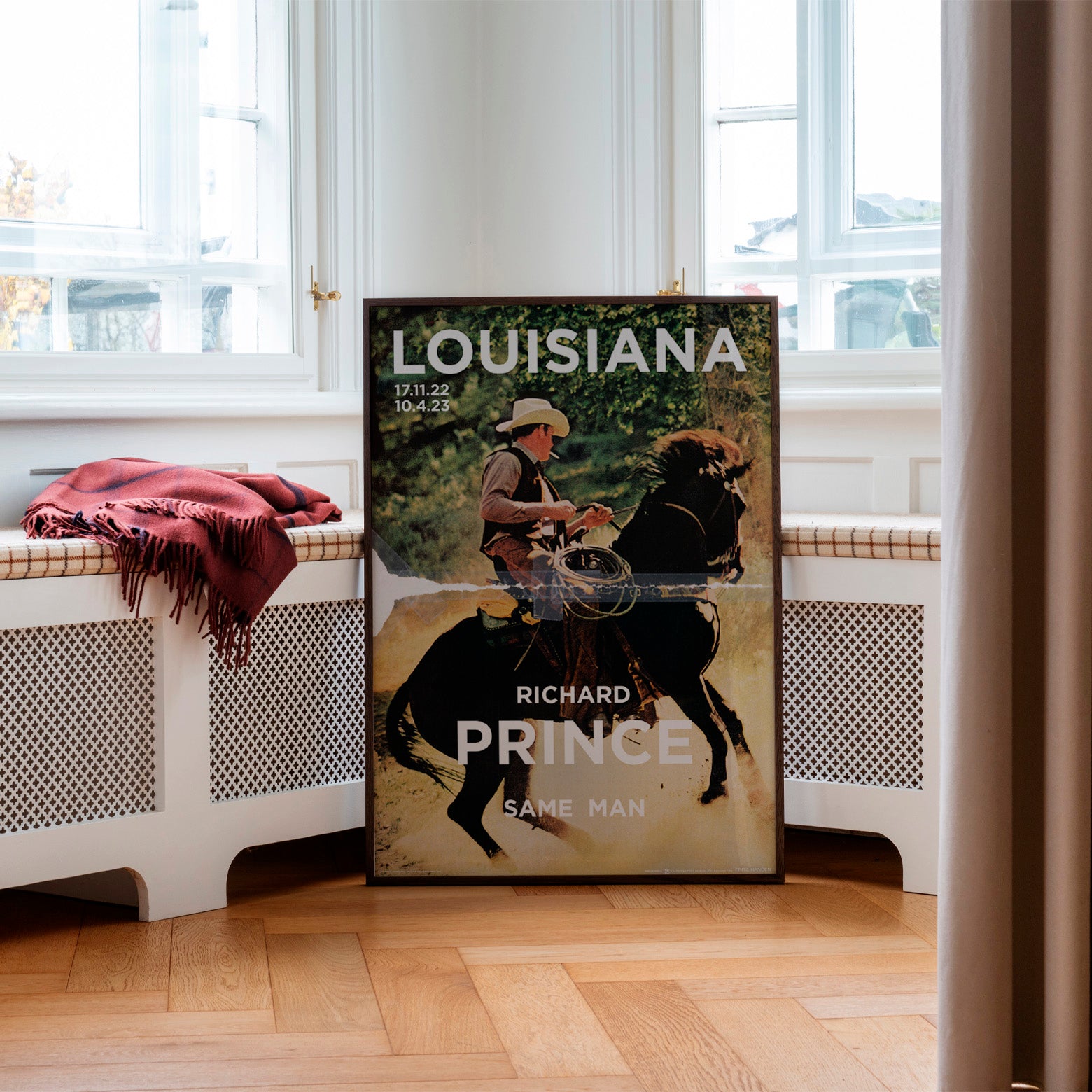 Louisiana Plakat med værket Cowboy af den amerikanske kunstner Richard Prince, udgivet i forbindelse med udstillingen Louisiana nye værker (2025). Udstillingen præsenterer et stor udvalg af de mange nye værker, Louisiana har erhvervet sig gennem de seneste år til samlingen mellem 2022-2025. Udstillingen præsenterer mere end 120 værker af godt 70 kunstnere fra hele verden.