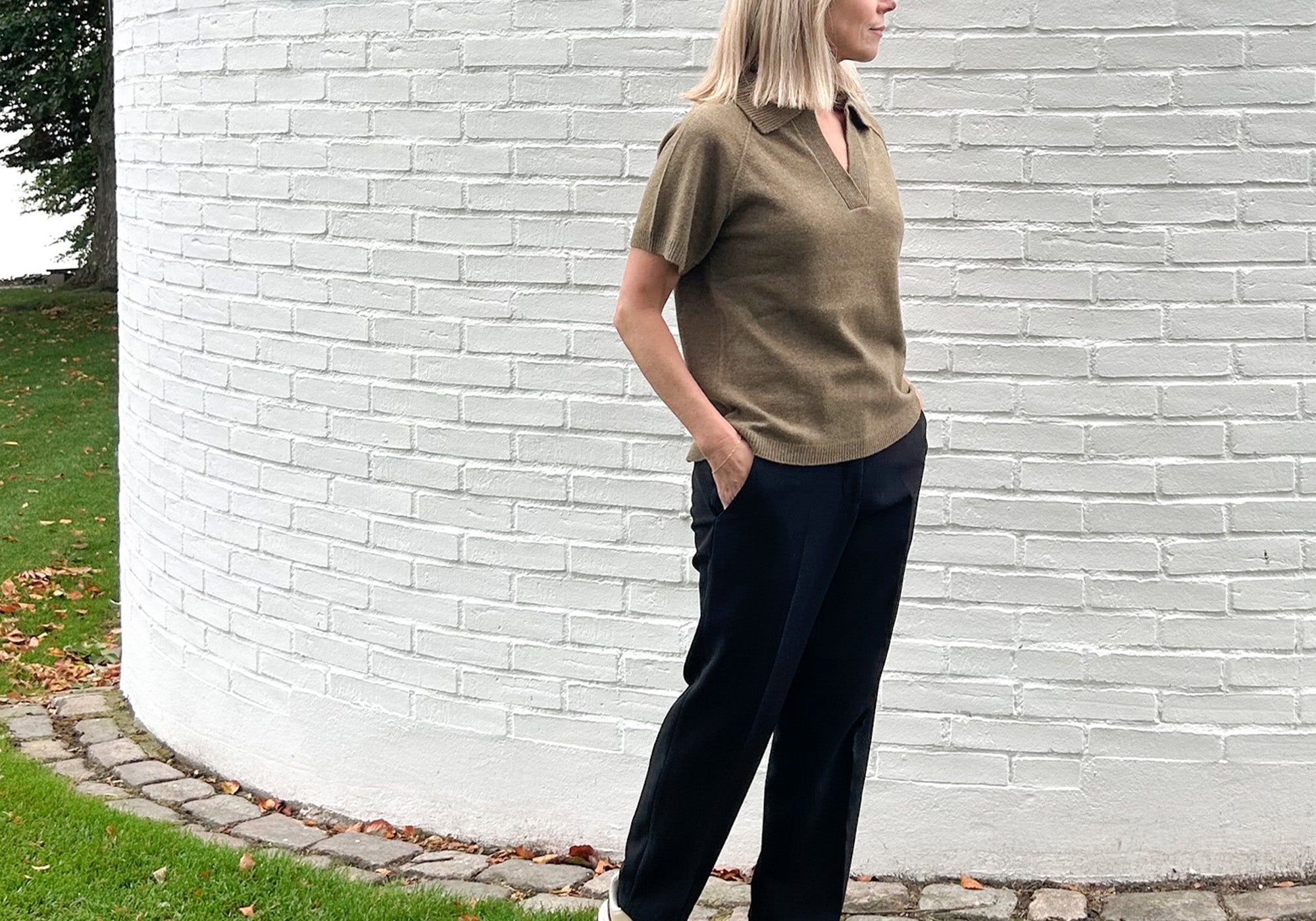 Klassisk polo t-shirt, Bella, i 100% cashmere fra Wuth Copenhagen. Grundlægger og designer, Birgitte Wuth, uddannet på ESMOD i Paris, designer selv alle kollektioner med udgangspunkt i sin personlige kærlighed til naturens egne materialer – her cashmere, spundet i det Indre Mongoliet, hvor gederne har særligt gunstige vejrforhold.